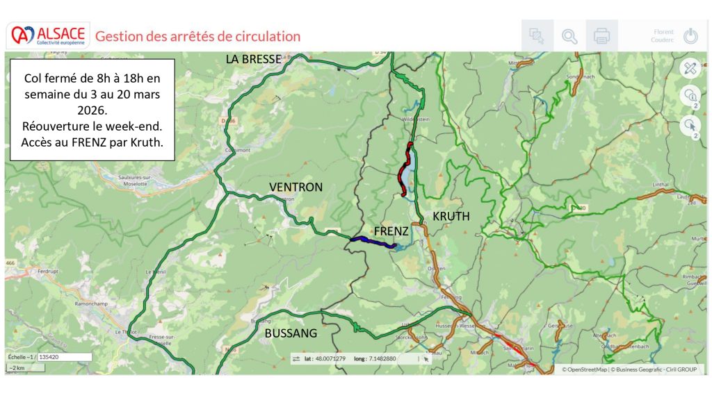 La commune informe les habitants et usagers de la route que des travaux de sécurisation seront prochainement réalisés au Col d’Oderen, situé entre les départements du Haut-Rhin et des Vosges.