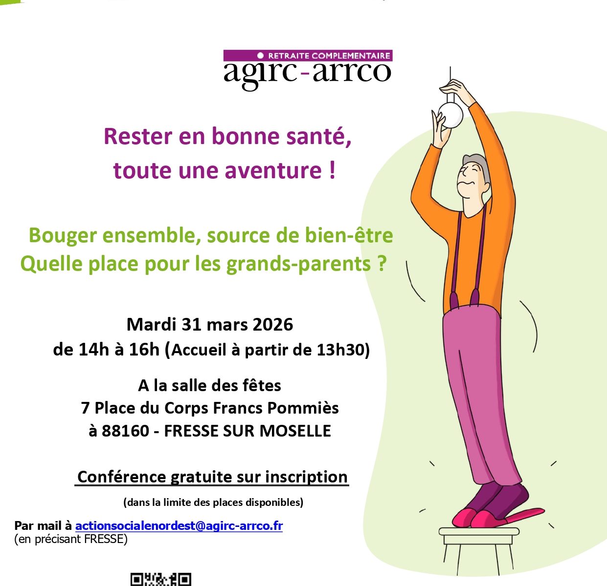 Cette conférence est organisée en partenariat entre le Comité d’action sociale Agirc-Arrco Nord-Est , la Maison sport-santé APS Vosges et la Communauté de Communes des Ballons des Hautes Vosges.